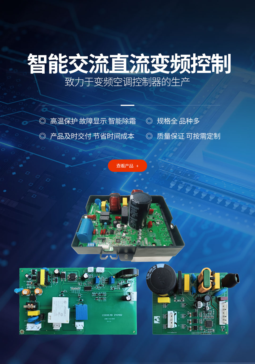 公司目前有多種專利,并具備生產(chǎn)及工藝技術(shù)。年產(chǎn)家電控制器一百萬套,產(chǎn)品廣泛用于空調(diào)、中央空調(diào)、電熱水器等領(lǐng)域